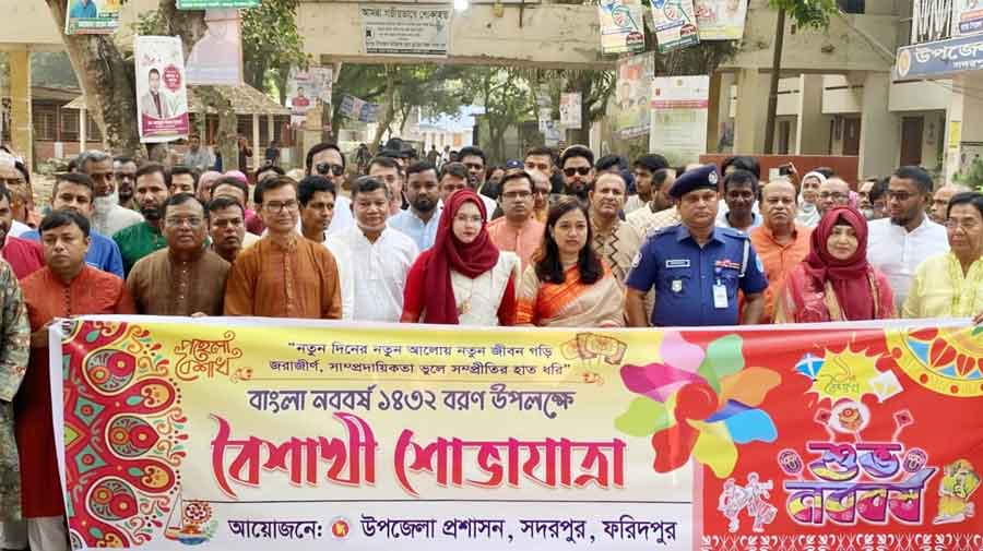 “নতুন দিনের নতুন আলোয় নতুন জীবন গড়ি জরাজীর্ণ, সাম্প্রদায়িকতা ভুলে সম্প্রীতির হাত ধরি” এই প্রতিপাদ্যকে সামনে রেখে নানা আয়োজনের মধ্য দিয়ে ফরিদপুরের সদরপুরে উদযাপিত হয়েছে বাংলা নববর্ষ ১৪৩২ বর্ষবরণ ও বৈশাখী শোভাযাত্রা। নতুন বছরকে স্বাগত জানাতে, ‘বৈশাখী শোভাযাত্রা, সাংস্কৃতিক অনুষ্ঠানসহ নানা কর্মসূচি পালন করছে উপজেলা প্রশাসন।