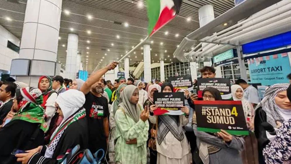 গ্লোবাল সুমুদ ফ্লোটিলা মিশনে অংশ নেওয়া মালয়েশিয়ার ২৩ জন মানবাধিকার কর্মী মঙ্গলবার রাতে দেশে ফিরেছেন। স্থানীয় সময় মঙ্গলবার রাত ১০টায় তাদের ফ্লাইট কুয়ালালামপুর আন্তর্জাতিক বিমানবন্দরের (কেএলআইএ) টার্মিনাল ১-এ অবতরণ করে।