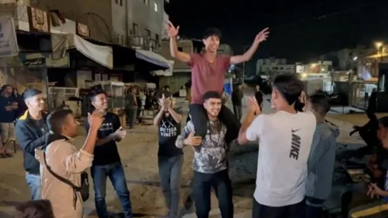 ফিলিস্তিনি সাংবাদিক সাঈদ মোহাম্মদ ইনস্টাগ্রামে রাতের একটি ভিডিও ফুটেজ পোস্ট করেছেন। এতে দেখা গেছে, প্রধান শহর দেইর আল বালাহতে আল-আকসা হাসপাতালের বাইরে পুরুষ ও মহিলাদের সমাগম দেখা গেছে। সঙ্গীতের তালে তালে নেচে নেচে শিস এবং হাততালি দিতে দেখা যাচ্ছে তাদের। একইসঙ্গে ‘আল্লাহু আকবর’ বলতেও দেখা গেছে।