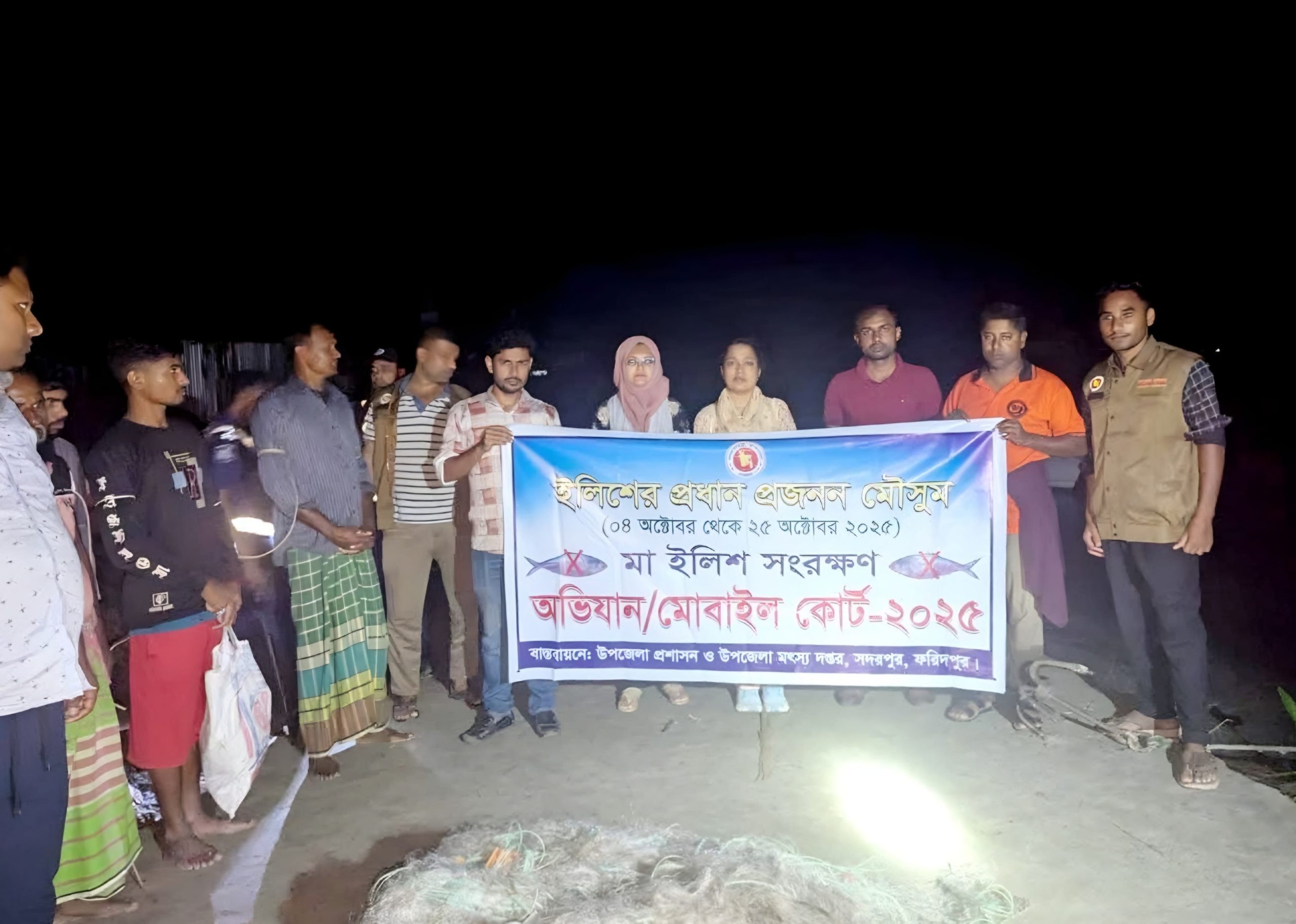 প্রজনন মৌসুমে মা ইলিশ রক্ষায় বিশেষ অভিযান পরিচালনা করেছে ফরিদপুরের সদরপুর উপজেলা প্রশাসন। নিষিদ্ধ সময়ে মা ইলিশ শিকার ও কারেন্ট জাল ব্যবহারের বিরুদ্ধে সোমবার (১৩ অক্টোবর) দিবাগত রাতে পদ্মা নদীর বিভিন্ন পয়েন্টে এ অভিযান চালানো হয়।