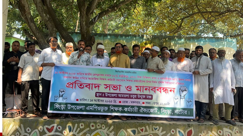 নাটোরের সিংড়ায় শিক্ষক-কর্মচারীর উপর পুলিশি নির্যাতনের প্রতিবাদে প্রতিবাদ সভা, মানববন্ধন ও কর্মবিরতি হয়েছে।