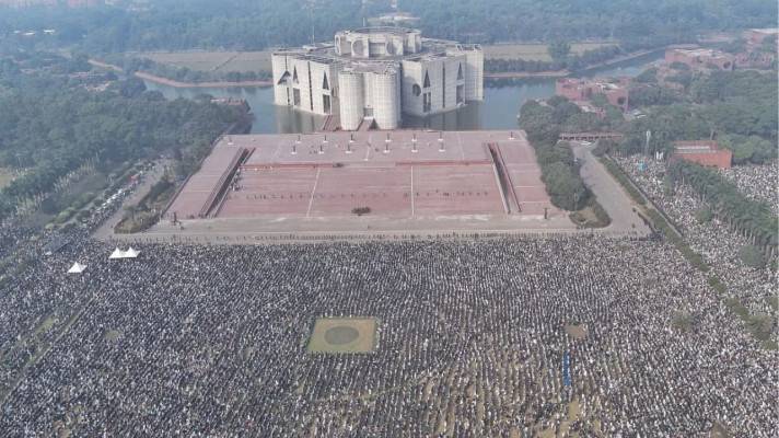 সরেজমিনে দেখা গেছে, মানিক মিয়া অ্যাভিনিউ ছিল লোকে লোকারণ্য। জানাজার কাতারে জায়গা না পেয়ে অনেককে পেছনের দিকে সরে যেতে দেখা যায়। আশপাশের ভবনের গ্যারেজ, গলি এবং ছোট-বড় ফাঁকা জায়গায় দাঁড়িয়ে কাতার সোজা করে নামাজ আদায় করেন মানুষ।