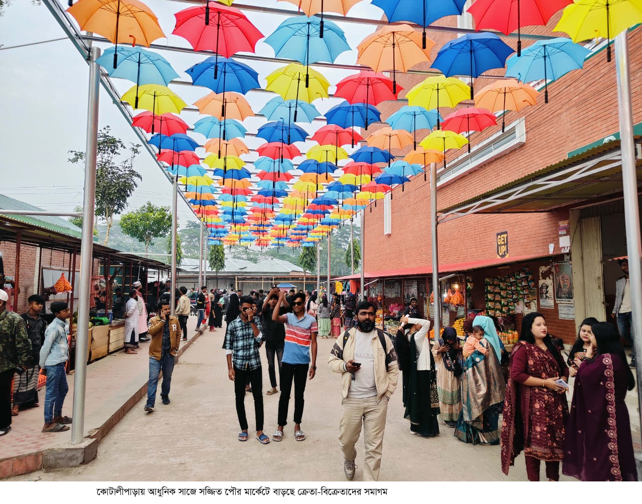 রঙ্গিন ছাতায় সজ্জিত কোটালীপাড়া পৌর মার্কেটে ক্রেতা ও দর্শণার্থীদের উপচেপড়া ভিড়
