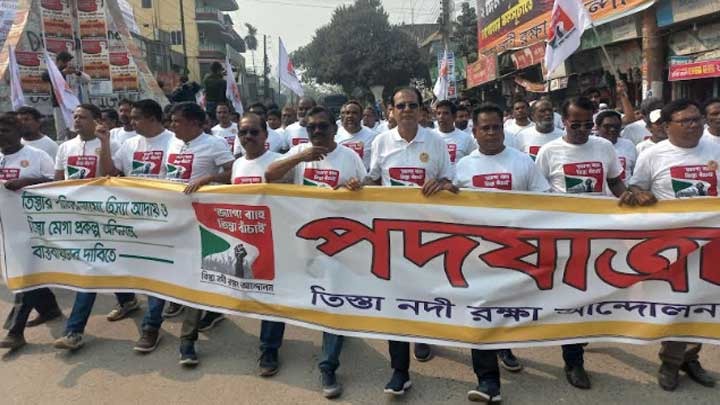 জেলা শহরের রেলওয়ে স্টেশন রোড থেকে শুরু হয়ে পদযাত্রাটি বিভিন্ন সড়ক প্রদক্ষিণ করে মিশনমোড়ে গিয়ে শেষ হয়। নেতৃত্ব দেন তিস্তা নদী রক্ষা আন্দোলন কমিটির প্রধান সমন্বয়ক, কেন্দ্রীয় বিএনপির সাংগঠনিক সম্পাদক ও জেলা বিএনপির সভাপতি অধ্যক্ষ আসাদুল হাবিব দুলু।