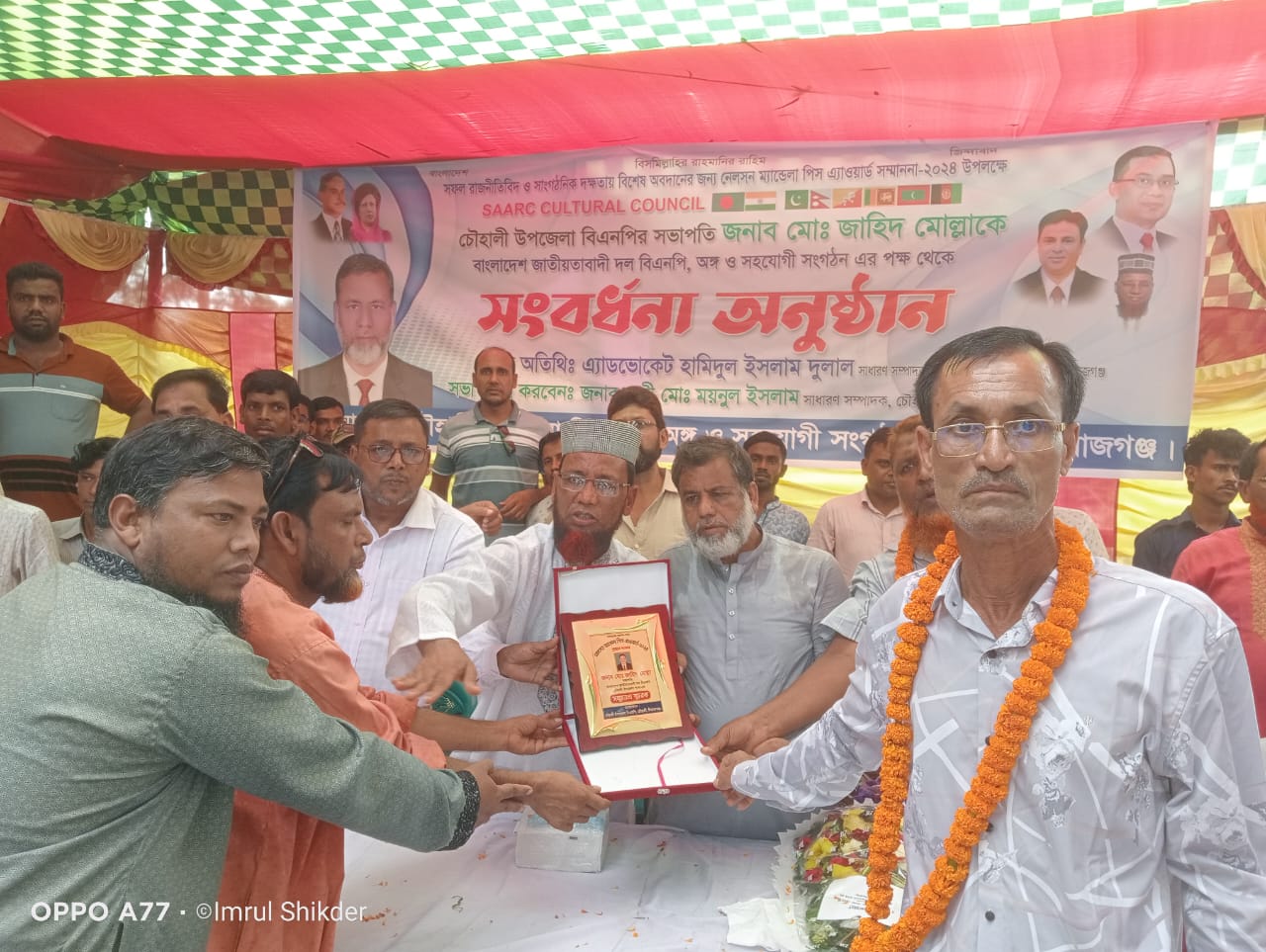 সফল রাজনীতিবিদ ও সাংগঠনিক দক্ষতায় বিশেষ অবদানের জন্য নেলসন ম্যান্ডেলা পিস এ্যাওয়ার্ড সম্মননা ২০২৪ পাওয়ায় চৌহালী উপজেলা বিএনপির সভাপতি মোঃ