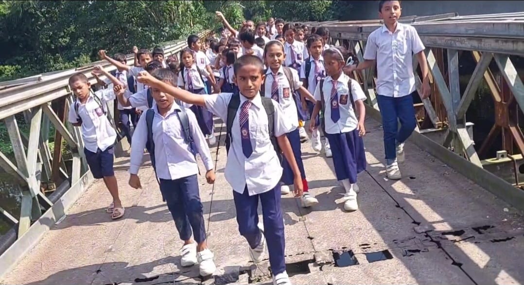 কোটালীপাড়ায় ব্রীজ রক্ষার দাবীতে শিশু শিক্ষার্থীদের বিক্ষোভ