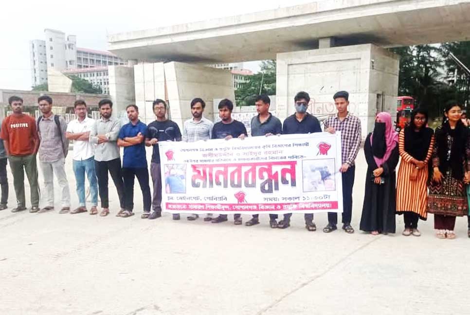 গোপালগঞ্জে সমন্বয়ক ও ছাত্র অধিকার পরিষদের দুই নেতার ওপর হামলা ও মারপিটের প্রতিবাদে মানববন্ধন কর্মসূচি পালন করেছে বিজ্ঞান ও প্রযুক্তি