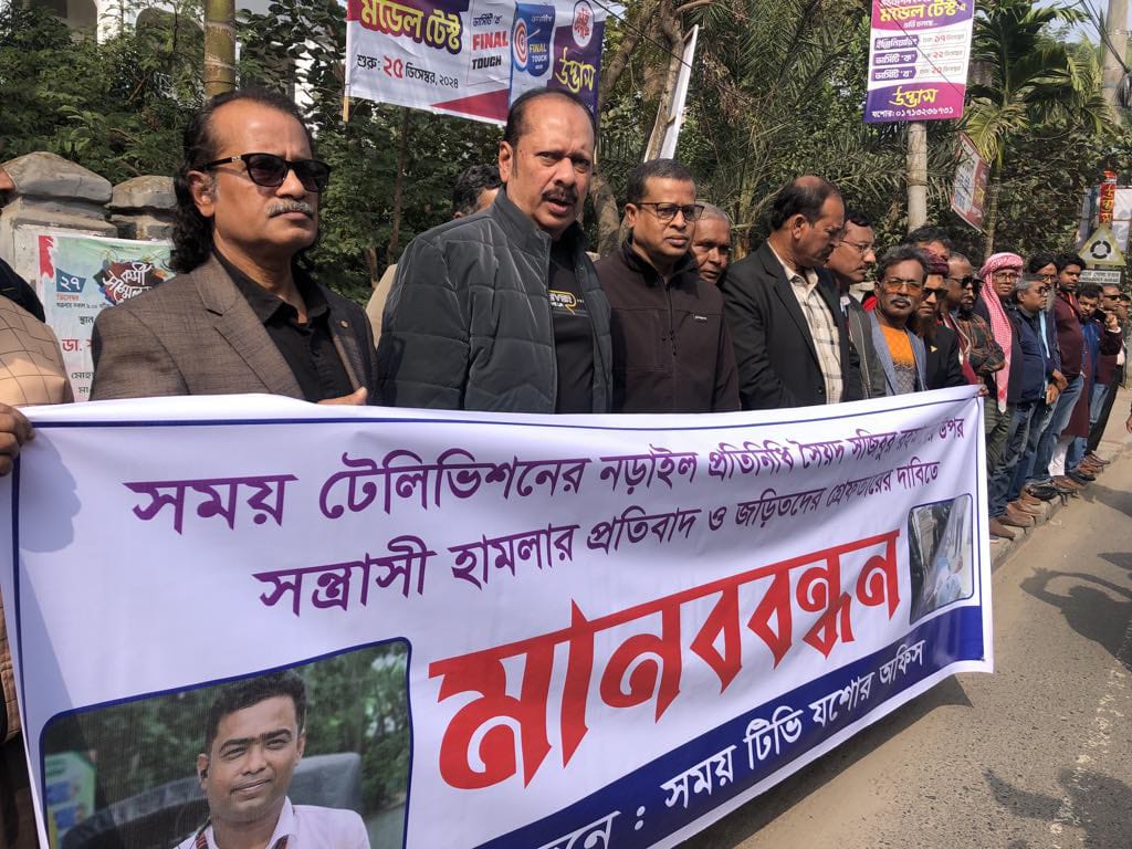 সময় টিভির নড়াইল প্রতিনিধির উপর হামলার প্রতিবাদে যশোরে মানববন্ধন