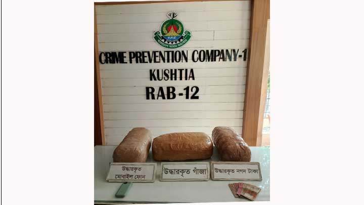 কুষ্টিয়ায় র্যাবের অভিযানে ১২ কেজি গাঁজা সহ ১ মাদক ব্যবসায়ী গ্রেফতার