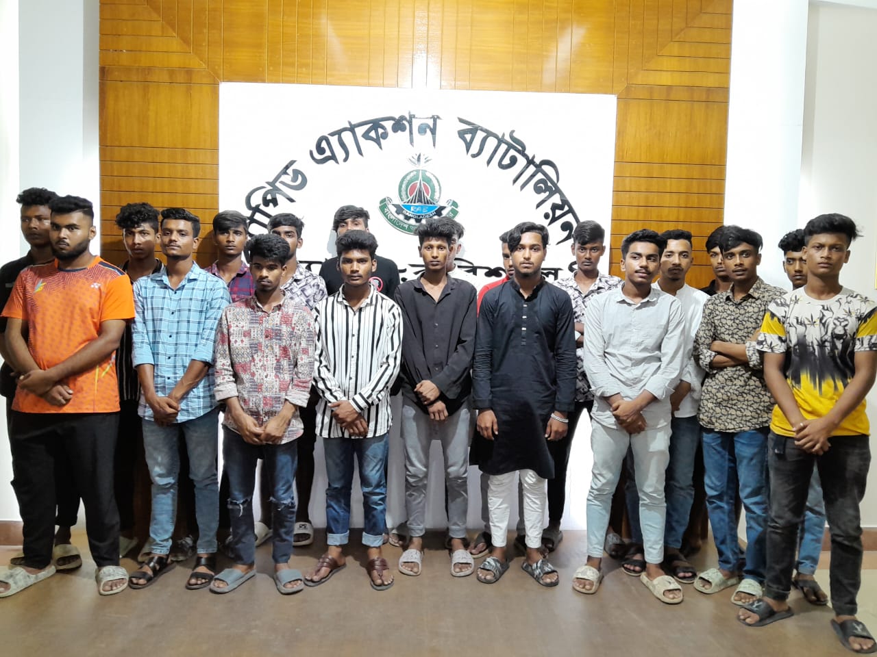 ঝালকাঠি সদর থেকে কিশোর গ্যাংয়ের ২০ সদস্য আটক করেছে র্যাব ৮