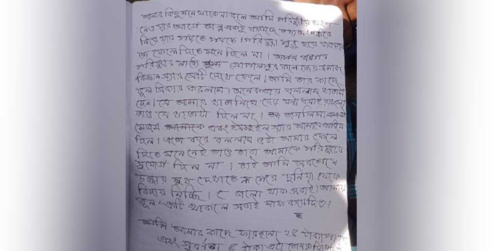 নকল করতে গিয়ে ধরা, চিরকুট লিখে আ ত্ম হ ত্যা