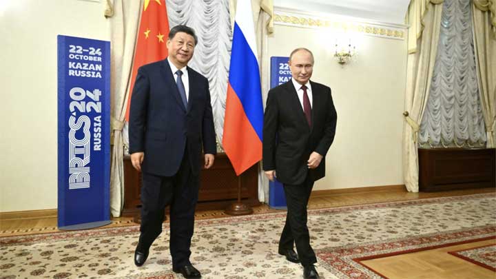 চীনের প্রেসিডেন্ট শি জিনপিং মঙ্গলবার কাজানে ব্রিকস সম্মেলনে প্রেসিডেন্ট ভ্লাদিমির পুতিনের সঙ্গে সাক্ষাৎকরার সময় ‘বিশৃঙ্খল’ বিশ্বে রাশিয়ার সঙ্গে তার দেশের