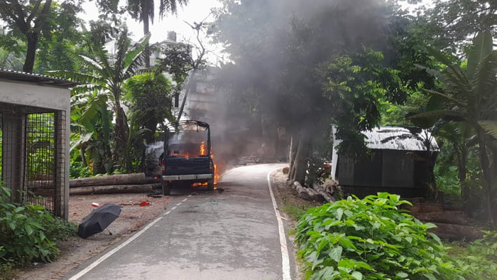 গোপালগঞ্জে পুলিশের গাড়িতে আগুন