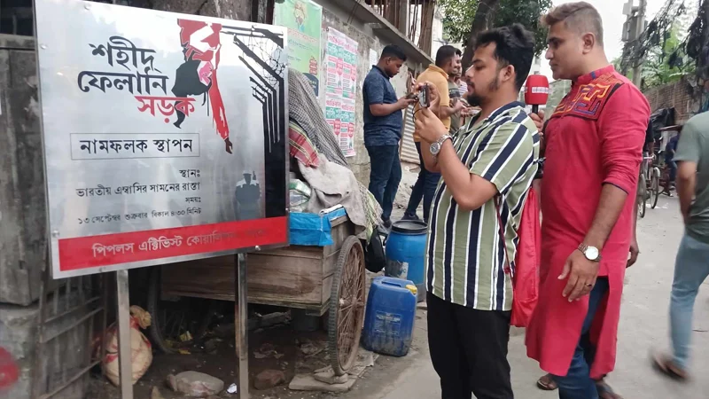 পুলিশি বাধা উপেক্ষা করে ভারতীয় দূতাবাসের সামনে ‘শহিদ ফেলানি সড়কের’ নামফলক স্থাপন