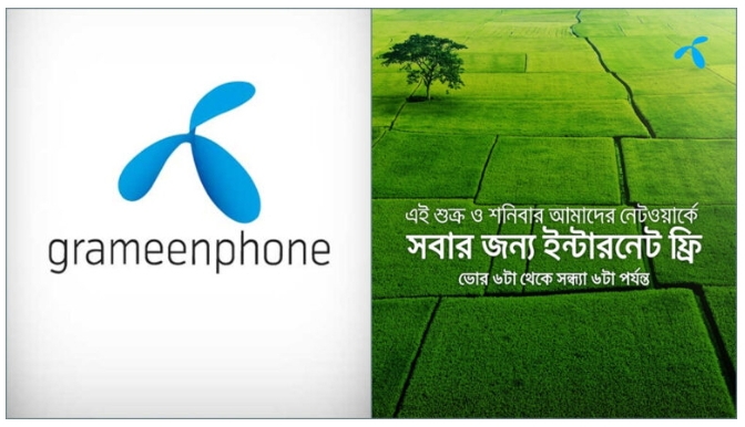 শুক্র ও শনিবার দিনে ইন্টারনেট ফ্রি করে দিলো গ্রামীণফোন