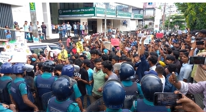 পুলিশের বাধা উপেক্ষা করে আদালত চত্বরে শিক্ষার্থীরা