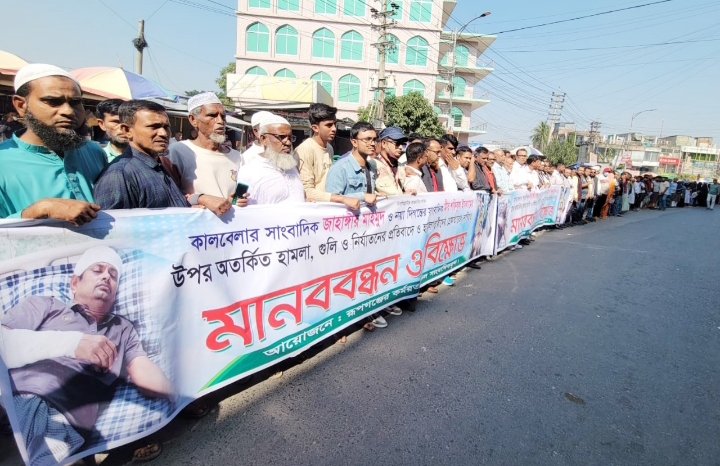 রূপগঞ্জে সাংবাদিক নির্যাতনের প্রতিবাদে মানববন্ধন