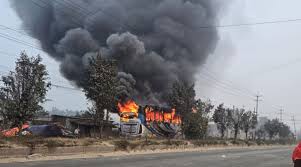 কারখানা খোলার দাবিতে আগুন ভাঙচুর অবরোধ