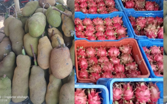 আমের পর কাঁঠল ও ড্রাগন ফলে সরগরম বেলতলা বাজার