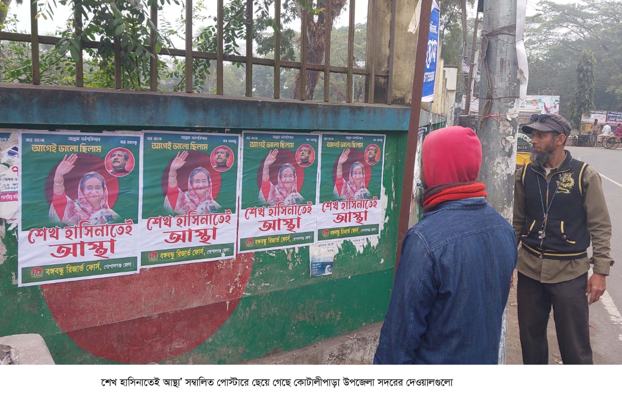 ‘শেখ হাসিনাতেই আস্থা’ লেখা পোস্টারে ছেয়ে গেছে কোটালীপাড়া