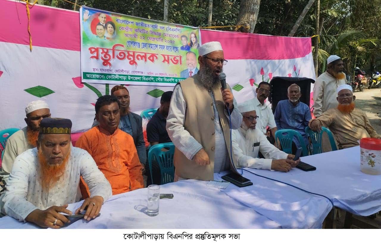 গোপালগঞ্জে ২২ফেব্রুয়ারীর সমাবেশকে সফল করতে কোটালীপাড়ায় বিএনপির প্রস্তুতিমূলক সভা