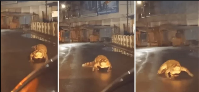 অবিরাম বৃষ্টিতে কয়েকদিন ধরেই ভিজছে জেলা। এর মধ্যেই দেখা গেল বর্ষণমুখর রাতের রাস্তায় হেঁটে বেড়াচ্ছে একটি বিশাল কুমির। আর দৃশ্যটি