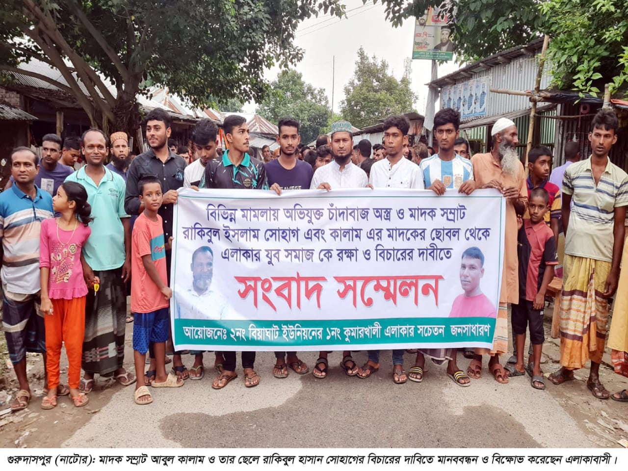 মাদকসম্রাট পিতাপুত্রের অত্যাচারে অতিষ্ঠ গ্রামবাসীর মানববন্ধন