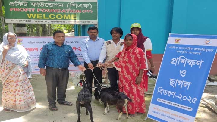 কালীগঞ্জে বিএনএফ এর অর্থায়নে দরিদ্র নারীদের মাঝে বিনামূল্যে ছাগল বিতরণ